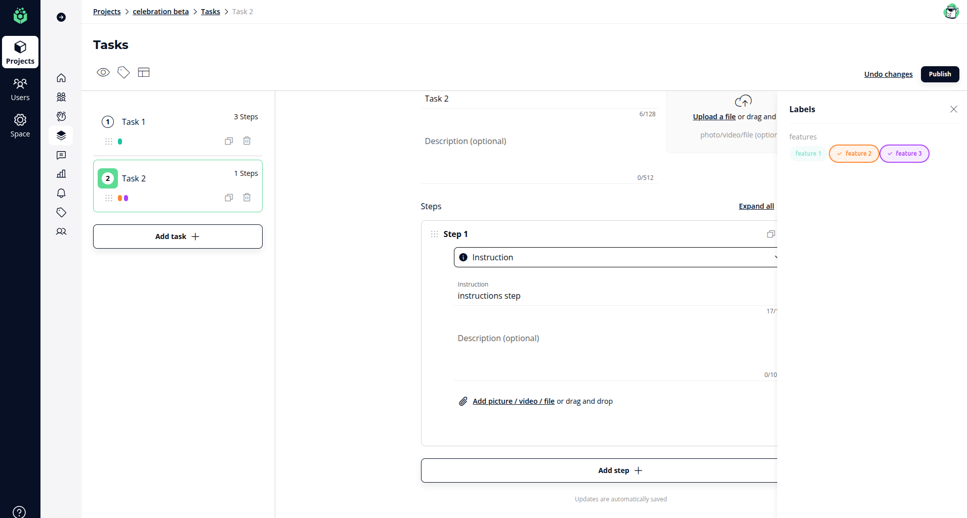 A task is only visible to testers whose labels match the task’s labels. Tasks without labels remain visible to everyone. Tasks and testers can have multiple labels assigned at the same time.