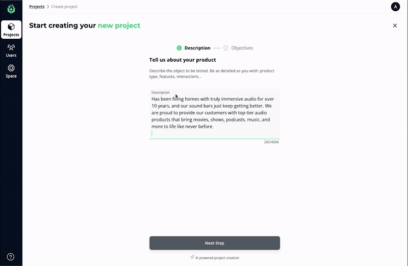 - You can build your project by using our AI-powered task creation assistant. Enter a description of your product and a list of objectives you want to achieve. Stomio AI will generate a flow. Do final modifications to your needs and start your project!