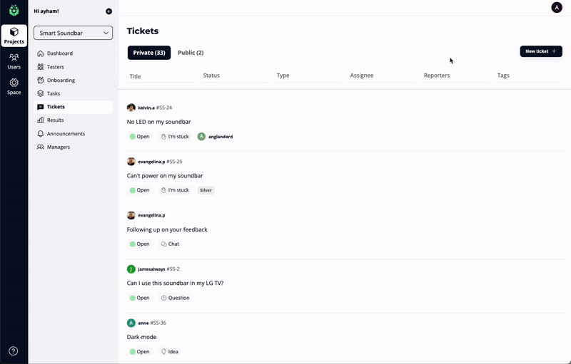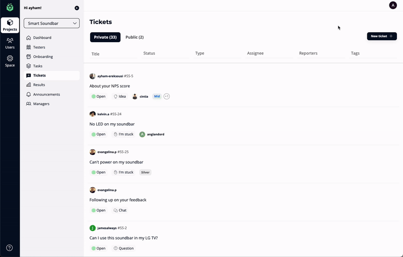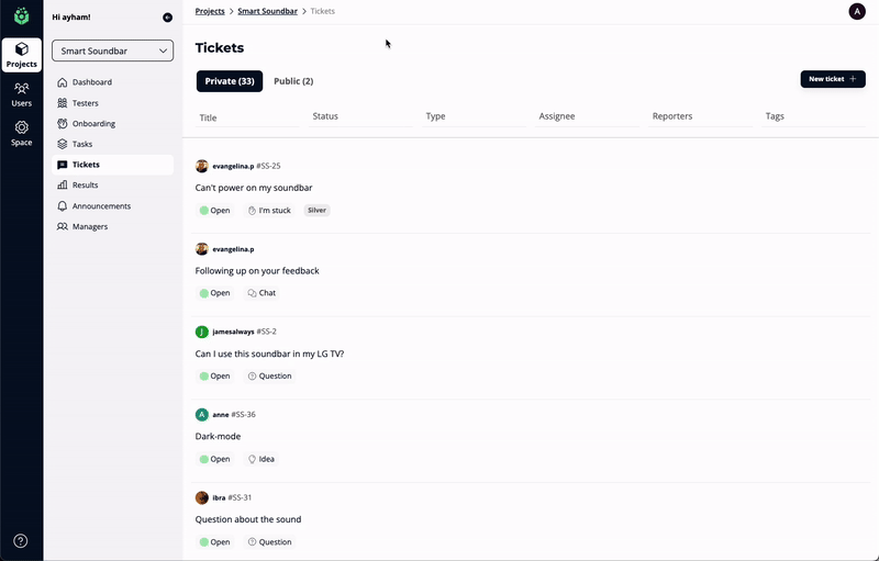 Easily categorize tickets based on their type (Bug, I’m stuck, Question, Idea), tailored to your needs.