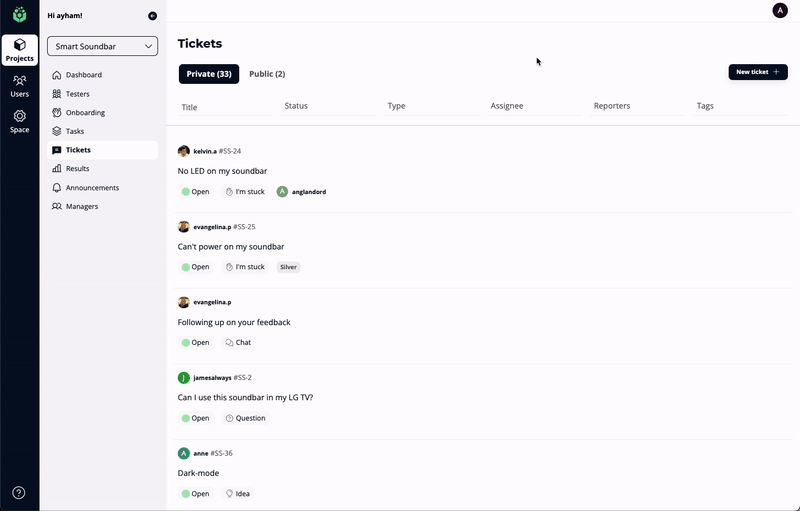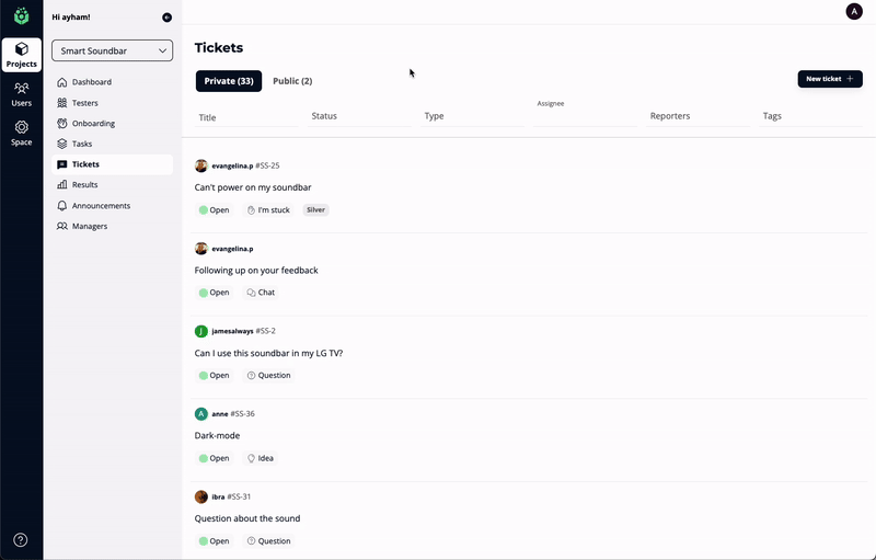 Assigning tasks to managers or teammates? Filter tickets by assignee to track responsibilities seamlessly.