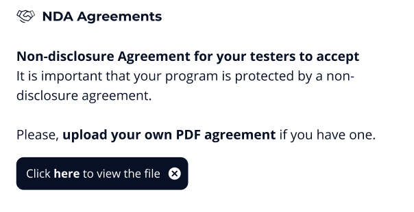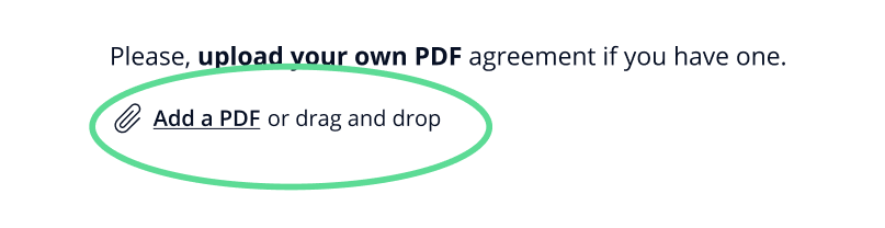 Click on the block to go to the NDA screen where you can upload your agreement as a PDF file only by clicking on “Add a PDF”.