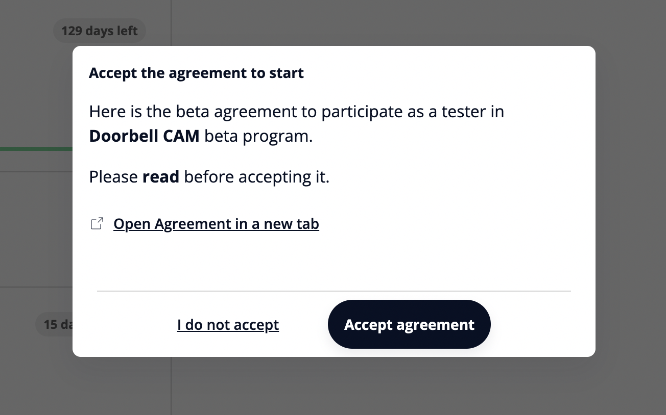 When a tester clicks on the beta program, they will be prompted with a popup to accept the agreement. If they accept, they can access the beta program. If they don’t, they can’t access the beta and will be considered inactive until they accept the agreement.