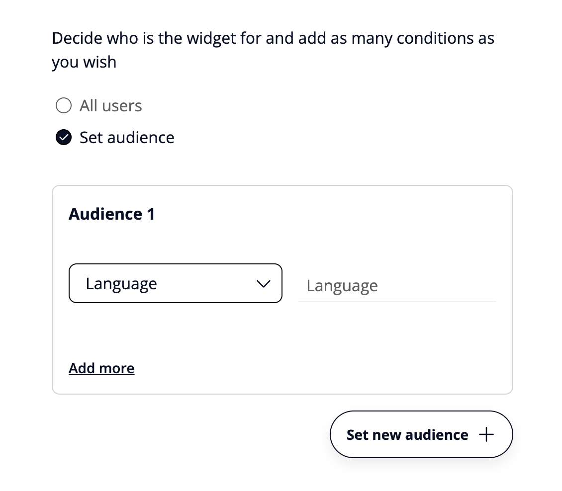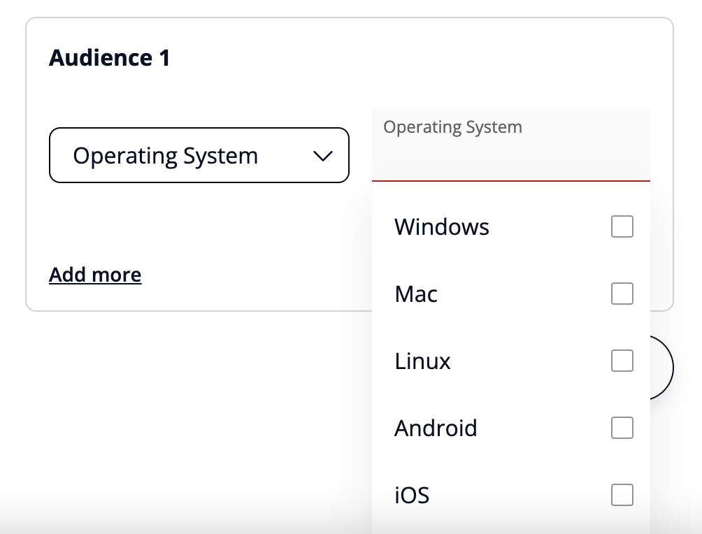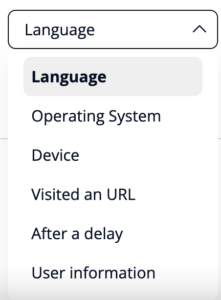 3. Set audience criteria selecting one of the options from the dropdown. You have available the following options.